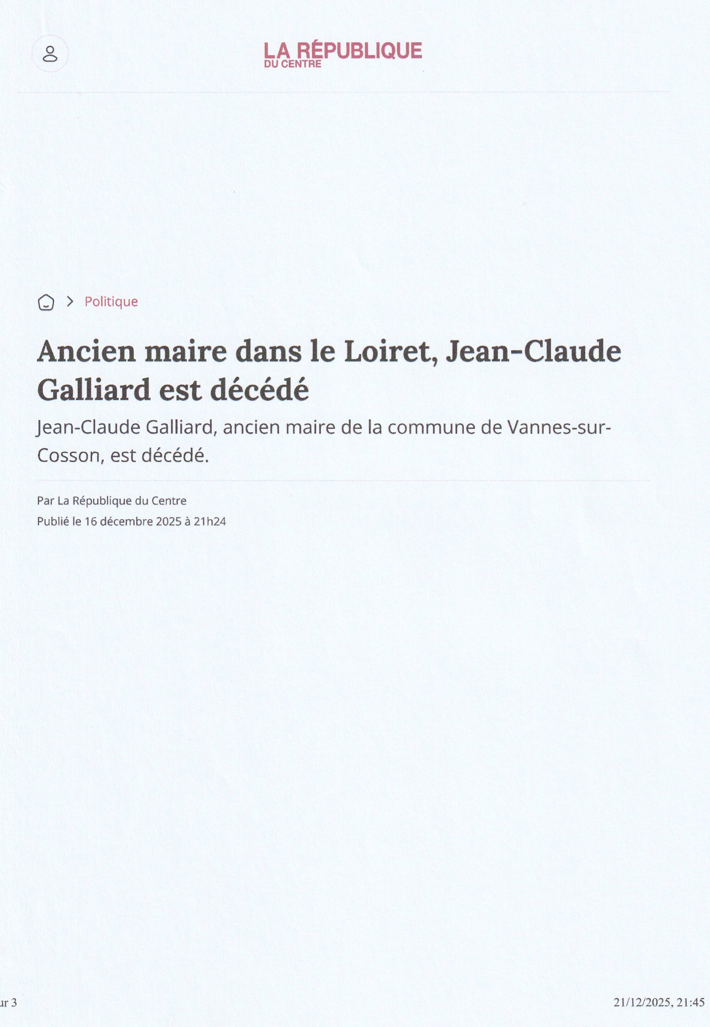 La République du Centre, Internet, 21 décembre 2025
