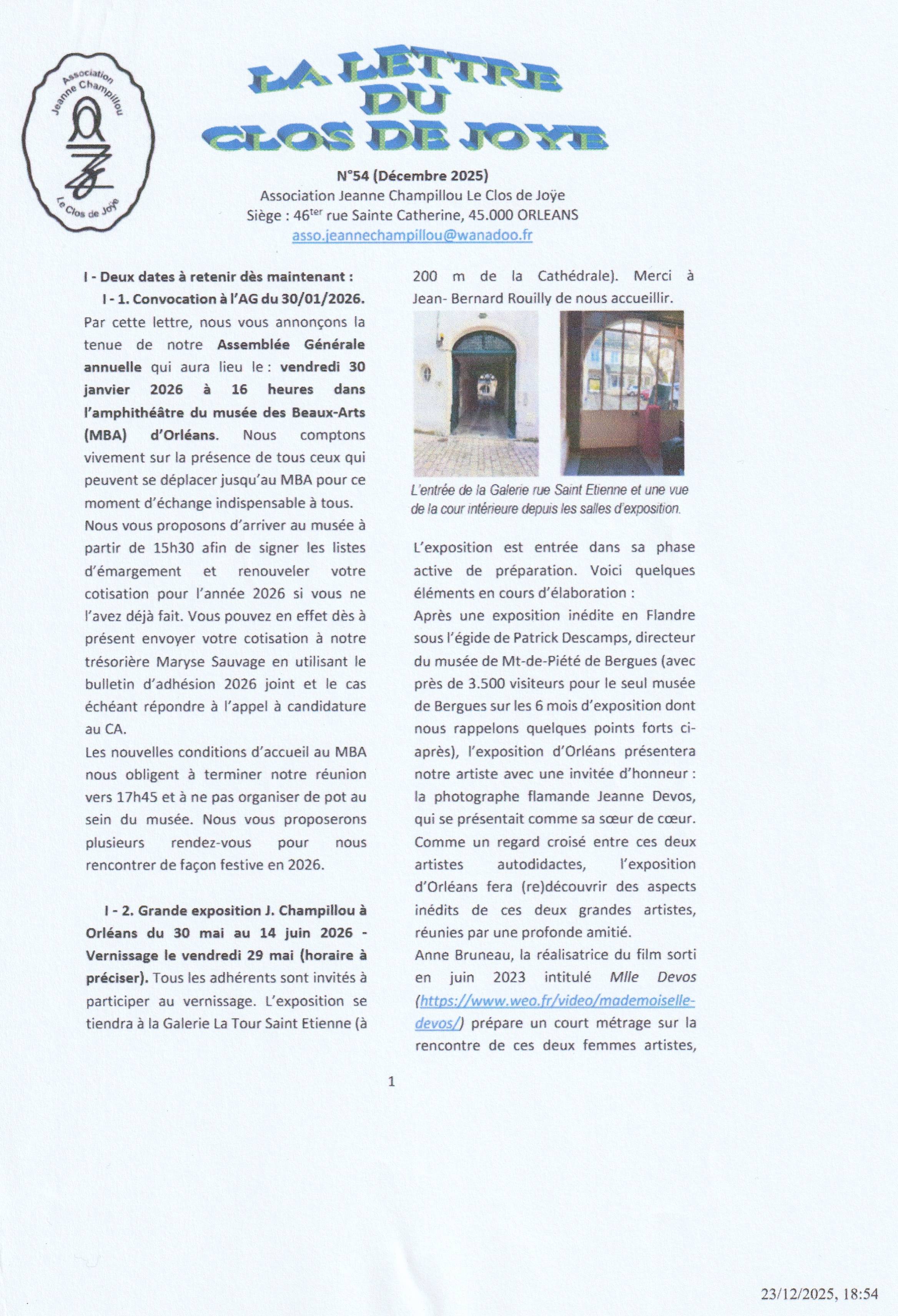 Lettre d'information de l'ADAMA 45, décembre 2025